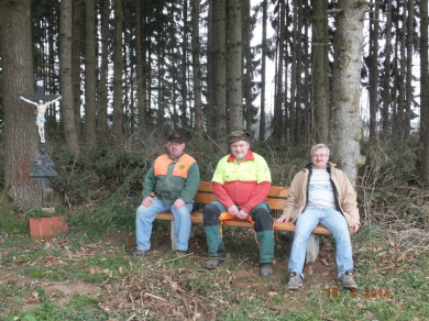 Probesitzen auf der neuen Bank (v.l.n.r.) Josef Oswald, Josef Janicher, Lorenz Loder