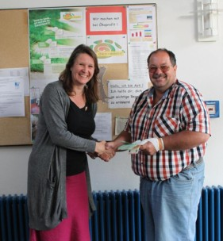 Der Kreisverband der Gartenfreunde bezuschusste die Aktion mit 410 Euro, die Vorsitzender Gerhard Süßmeir der Leiterin der Grundschule Ried, Melanie Prager, als Spende überreichte. Glücklich über diesen unerwarteten Geldsegen versicherte die Schulleiterin, einen Teil als Spende für eine Konzertveranstaltung von Vivaldi, die in der Turnhalle stattfand, zu nutzen und den Rest für ökologische Aktionen der Schule zu verwenden.